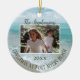 Custom personalized beach themed Christmas ornament with your family photo, beautiful customizable beach ornament! Celebrate your family event, reunion, vacation, or cruise at a beach with this keepsake ornament. Beautiful clear blue water and sand makes an elegant tropical ocean coastal nautical theme for your holiday decor. Pretty turquoise water waves crashing on the shore and pastel blue sky.