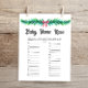 Christmas Baby Name Race Baby Shower Game Card