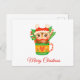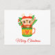 Christmas Baby Owl in a Teacup with Candy Cane Holiday Postcard