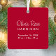 Cute keepsake Christmas ornament with your newborn's picture filling one side. On the other side, personalise with their name in a stylish white script and their name and birth stats in modern white typography on a red background. Perfect gift for the new grandparents, aunts, uncles, friends, etc.