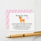 Baby shower fun book request cards with cute whimsy baby reindeer and pink and white sweet love hearts pattern; ideal for a winter or Christmas time baby girl Baby Shower.