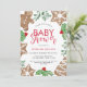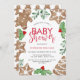 This Christmas baby shower invitation is decorated with watercolor cookies, holly, mistletoe, berries, and stylish script typography.