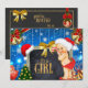 Christmas Baby Shower Invitation with a Vintage Baby Girl on Chalkboard and Blue Background