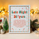 Add a festive touch to your event with this Personalised Christmas Baby Shower Late Night Diapers Poster, a fun and practical game sign for guests to enjoy. Perfect for christmas baby shower ideas and unique december baby shower themes, this design brings holiday cheer to your celebration. Whether you’re planning a cosy christmas baby shower or looking for creative december baby shower ideas, this poster fits beautifully with the santa baby baby shower theme. Celebrate your little santa baby in style!