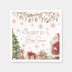 Beautiful Christmas baby shower napkin design featuring watercolor Santa, a decorated Christmas tree, twinkling holiday lights, snowflakes, and festive wrapped gifts. Perfect for a Merry Little Baby Shower or winter baby sprinkle. Adds a charming holiday touch to your table décor and coordinates with matching invitations, favor tags, table cards, diaper raffle tickets, books for baby inserts, and more. Ideal for Christmas-themed celebrations.