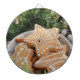 Design features a photograph of festive gingerbread.