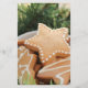 Design features a photograph of festive gingerbread.