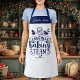 Celebrate holiday baking in style with this cute, personalised Christmas Baking Team apron in a classic navy colour. Adorned with a gingerbread man, baking tools, and festive elements, this apron brings a cosy holiday feel to your kitchen. Customise it with your name to make your holiday baking even more special!