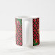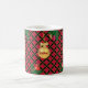 Christmas golden ball, pine cones and cardinal bird on black, golden and red chequered background Coffee Mug. There is more to this design than meets the eye!