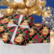 Christmas ball, bird, pine cones on Black & Red Wrapping Paper