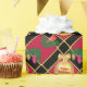 Christmas golden ball, pine cones and cardinal bird on black, golden and red chequered background Gift Wrapping Paper. There is more to this design than meets the eye.