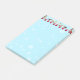 Christmas red balls and cute carol birds with light orbs on light turquoise blue Post-It Notes.