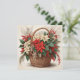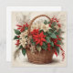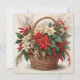 Christmas Basket with Red, White Poinsettia Flower Holiday Card