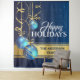 Bring the spirit of Christmas to your home or office with this beautiful three dimensional vector graphic of blue and gold swirl tree baubels hanging down off the end of pretty faux gold ribbons. They are framed by a dark blue snow filled background and have a faux gold banner across them. Personalise the templates with your custom Christmas greeting; message or quote. These are ideal for any business, corporate or family looking for a luxurious Xmas wall hanging