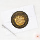 Add a beautiful holiday detail to your holiday cards, and other correspondence during the Christmas season with this festive round return address envelope seal. An elegant gold glitter Christmas bauble accents the centre of the design on a warm dark background for a contrast-rich text.
