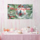 Capture the holiday spirit with this customisable Christmas banner! Featuring lush pine branches with snowy accents, a clear glass ornament with a serene winter scene, and a red ribbon bow, it’s perfect for adding elegance to your decor. The “Merry Christmas” text in bold red cursive can be personalised with your family name and year. This unique design blends traditional elements with a personal touch, making it a festive and inviting addition to any home.