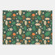 Christmas Baubles and Winter Foliage Green Wrapping Paper Sheet
