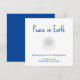 Tropical Beach Peace on Earth Holiday greeting card, with a sand dollar and blue typography design. The back has a blue colour to add contrast. With customisable lettering, you can add your own text. A simple way to send love and well wishes to friends and family this Christmas.