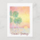 Tropical Beach Christmas postcard, with a palm trees artistic image and script typography. With customisable lettering, you can add your own message. A festive way send holiday wishes to friends and family from the tropics.