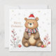 "This adorable illustration features a cheerful brown teddy bear wearing a festive red and white Santa hat and a cozy striped scarf. The bear has rosy cheeks and a soft, plush look, making it incredibly inviting. This charming graphic is perfect for children's Christmas apparel, holiday cards, ornaments, cozy blankets, or any product celebrating the sweet and simple joys of the holiday season."