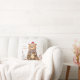 "This adorable illustration features a cheerful brown teddy bear wearing a festive red and white Santa hat and a cozy striped scarf. The bear has rosy cheeks and a soft, plush look, making it incredibly inviting. This charming graphic is perfect for children's Christmas apparel, holiday cards, ornaments, cozy blankets, or any product celebrating the sweet and simple joys of the holiday season."