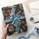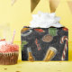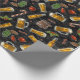 Beer and Christmas icons on a cross-hatched black background. Available in four types of premium paper and different five sizes. Width: 30”, Length: Multiple choices from 6 feet - 60 feet. Each roll up to 15’ in length; Lengths greater than 15’ shipped as multiple 15’ rolls. 6' roll wraps 3 shirt-sized boxes. Printed in USA