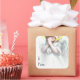 Beautiful little blonde praying angel, dressed in white with white wings, a yellow halo, and a "To: From:" text to tag Christmas presents with.