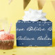 Believe text with snowflakes on navy blue background.