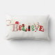 Christmas BELIEVE Typography Nostalgic Icons Lumbar Pillow. Decorate for the Christmas holiday season with this festive pillow filled with Christmas spirit featuring the word BELIEVE in creative typography made up of nostalgic Christmas icons like Santa, elves and reindeer components. ASSISTANCE: For help with design modification, transferring the design to another pillow type or another product or if you would like coordinating items, contact the designer BEFORE ORDERING via the Zazzle Chat MESSAGE tab below or email makeitaboutyoustore@gmail.com.