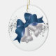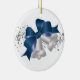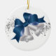 This ceramic ornament is shown with a festive Christmas holiday silver bells print.