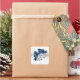 This small size sticker is shown with a festive Christmas holiday silver bells print.