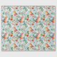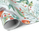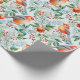 Christmas Bird Green Leaves Red Flowers Watercolor Wrapping Paper