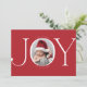 This unique newborn holiday photo card features your baby's photo in the centre of the word "joy" - perfect for sharing news of bundle of joy's First Christmas.