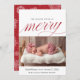 This birth announcement doubling as a Christmas card features a photo of your newborn and the phrase "the reason we're so merry". These photo holiday cards can also be used as a newborn First Christmas photo card.