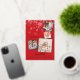 An elegant real gold foil 4 photo collage holiday birth announcement card to personalize with your special photos framed in gold, holiday message, names and birth stats. The reverse features falling snowflakes. You can customize the background color to match your holiday theme. Designed by Thisisnotme©