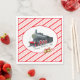 This paper napkin is shown in White with a festive Christmas train print on a candy cane stripes background.