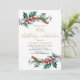 Christmas birthday party red holly gold elegant invitation