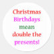 Christmas birthdays mean double the presents! Humourous design for those whose birthday falls on Christmas. A good reminder that it's not only Christmas but it's also their birthday and they should get more presents than everyone else.