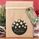 Create stickers to label your Christmas holiday homemade goods, cookies, candy, treats, party favors and more featuring elegant white and gold Christmas tree ornaments on a black background with your message in chic lettering. MATCHING items in our collection.