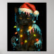 Christmas Black Cat Ice Cream Drip Santa Hat Cute Poster