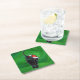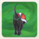 Christmas Black Cat on Green Square Paper Coaster