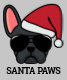 Join in the festive fun with this cute Christmas hoodie. The design features a black colored french bulldog wearing a red Santa hat and aviator sunglasses with the wording "Santa Paws" printed underneath.