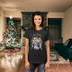 Black shirt. Personalise and add your own family photo. A golden Christmas tree bauble as frame.