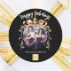 Black background. Personalise and add your own photo and company logo. A golden Christmas tree bauble as frame. Add a text, name or your web url.