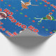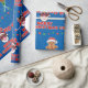 Make your gifts stand out with this festive matte wrapping paper featuring a playful Christmas pattern—bubblegum-blowing black Santa, holiday characters, stars, and snowflakes on a deep blue background. The matte finish prints in rich, full color and is great for high-contrast designs.
