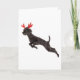 Christmas Black Toy Poodle Dog Reindeer Antlers Holiday Card