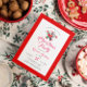 Elegant modern red and green Christmas bells and flowers bouquet with customisable modern typography. Customisable Christmas party template.