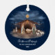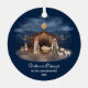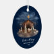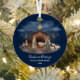 Wish family and friends Christmas blessings this holiday season. A beautiful Christian faith design featuring the King of Kings Jesus Christ our Lord Saviour. Nativity manger scene with Mary and Joseph. Monogram with name or family name and year of gift.