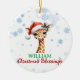 Personalised Christian ornament, cute Giraffe baby with Christmas hat, bible quote on the back, and snow background. Isaiah 7:14 " Therefore the Lord himself will give you a sign. Behold, the virgin shall conceive and bear a son, and shall call his name Immanuel."
