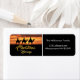 Elegant three Wise Men Christmas design, with the Magi riding on camels in the desert as silhouettes against an orange sky at sunset. The bottom half of the design fades out the colours to black, overlaid with the greeting, "Christmas Blessings" in shades of gold ornate script, edged with silvery grey. Easily personalised to add your own name and address details.